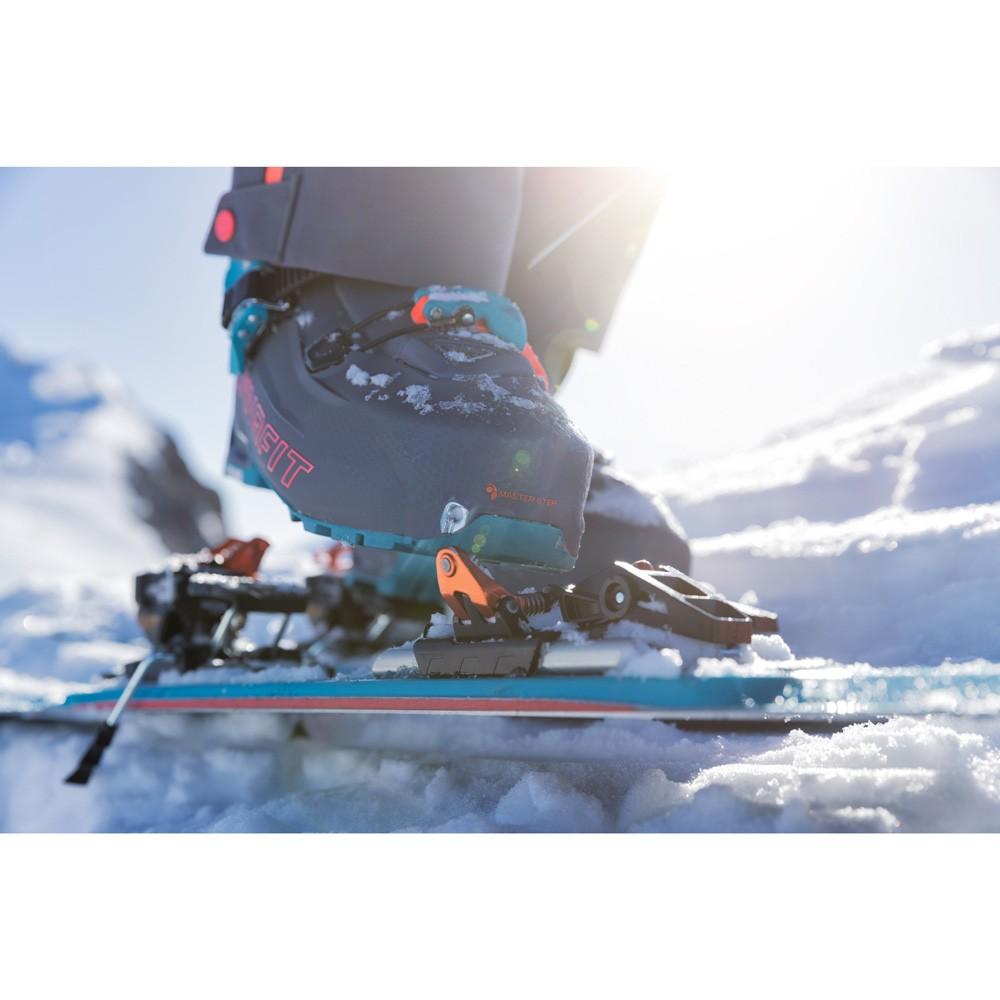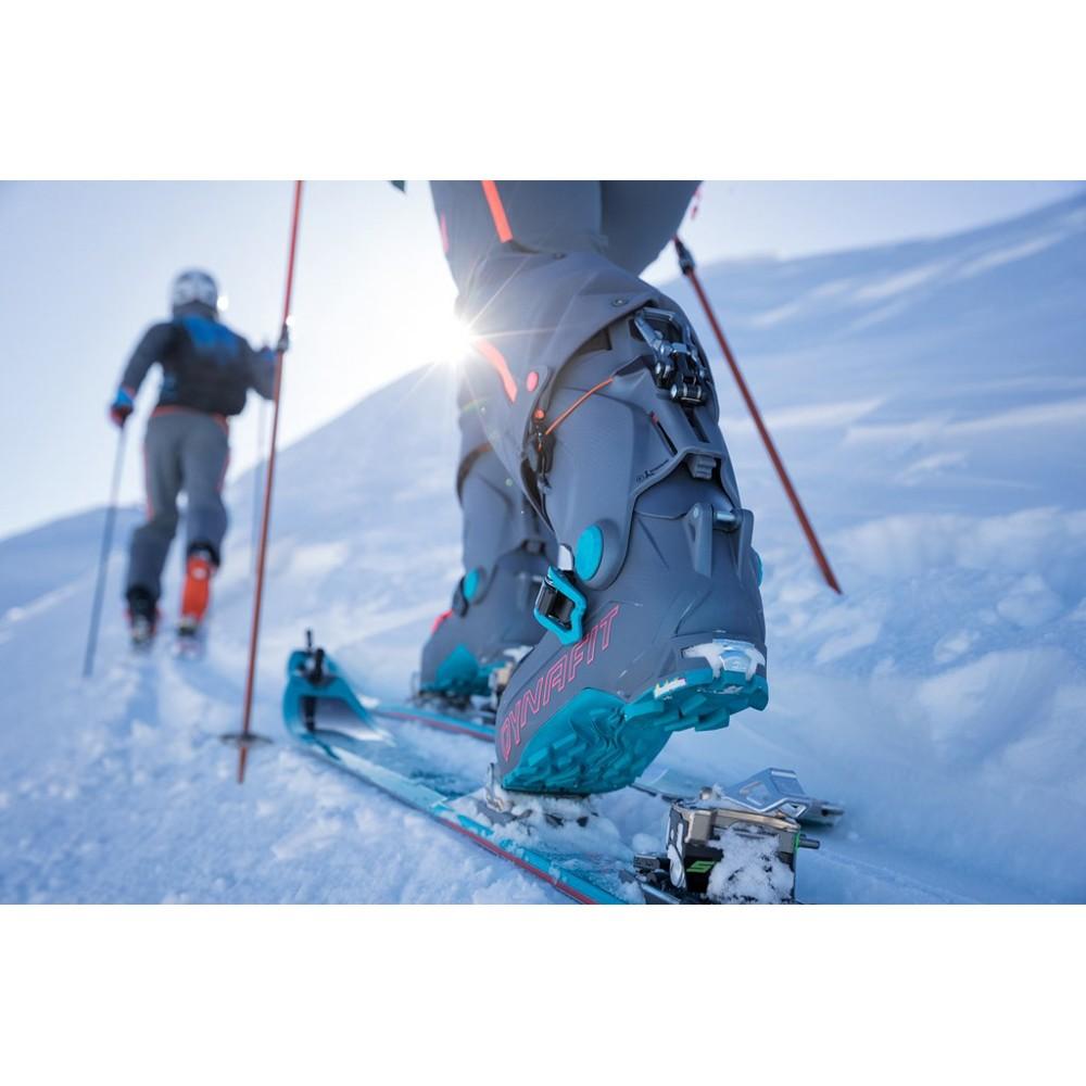 Se acabó tener que elegir. Las HOJI PRO TOUR no admiten concesiones: En los descensos, no se quedan atrás con respecto a la competencia alpina gracias a su gran rigidez y la óptima transmisión de la fuerza a los esquíes. Al mismo tiempo, consiguen una técnica de ascenso eficiente con la máxima comodidad, flexibilidad y una libertad de movimientos óptima con una rotación del eje de 55 grados. Esto hace posible caminar de forma natural y ahorrar energías incluso en terrenos con mucha pendiente. La Speed Nose aporta más eficiencia, agilidad y flexibilidad. Gracias a la horma de 103,5 mm de ancho, la Ultra Lock Strap y las tres hebillas con ajuste de precisión, el pie encaja perfectamente para dar el mejor rendimiento hasta en los terrenos más difíciles. El cambio rápido y sencillo entre ascenso y descenso se consigue con una sola patada gracias al sistema Hoji Lock, pendiente de patente: El mecanismo para cambiar entre esquí y paseo está unido por un sistema de bridas con las tres hebillas y la Ultra Lock Strap. Para hacer el cambio en el modo de descenso, solo hace falta mover la palanca de atrás. De esta forma, la bota se bloquea en una posición de 11 grados y queda lista para disfrutar del descenso. Otra de sus ventajas es su compatibilidad con los innovadores crampones CrampIn.