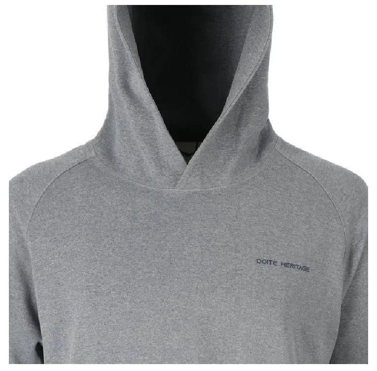 Polerón de hombre de estilo básico sin cierre con gorro en calce regular y tela melange con interior suave. Por su composición 94% polyester 6% spandex es elasticado y de secado rápido. Tiene gorro en doble capa, manga raglán, dos bolsillos de mano con cierre, ajuste con rib en puños y basta, logo Doite estampado en pecho.