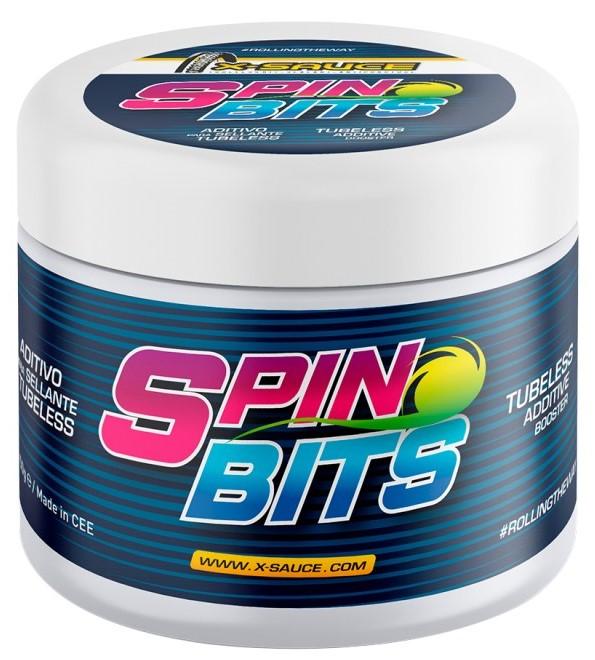 SPIN BITS es un aditivo granulado que mezclado con el líquido sellante refuerza su eficacia, siendo capaz de reparar cortes más grandes y más rápido, puesto que estas partículas sólidas se atascan en el orificio del pinchazo facilitando al líquido su tarea de reparación y vulcanizado.